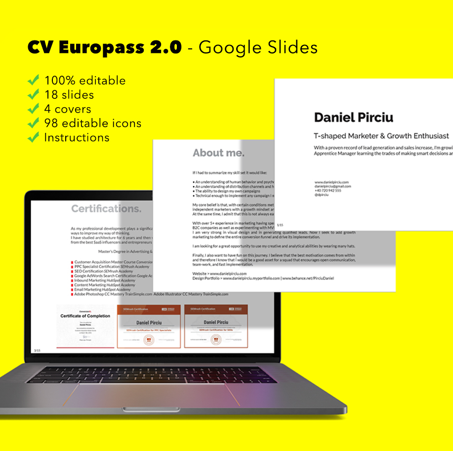 You'll get your own Google Slides CV Europass 2.0 template